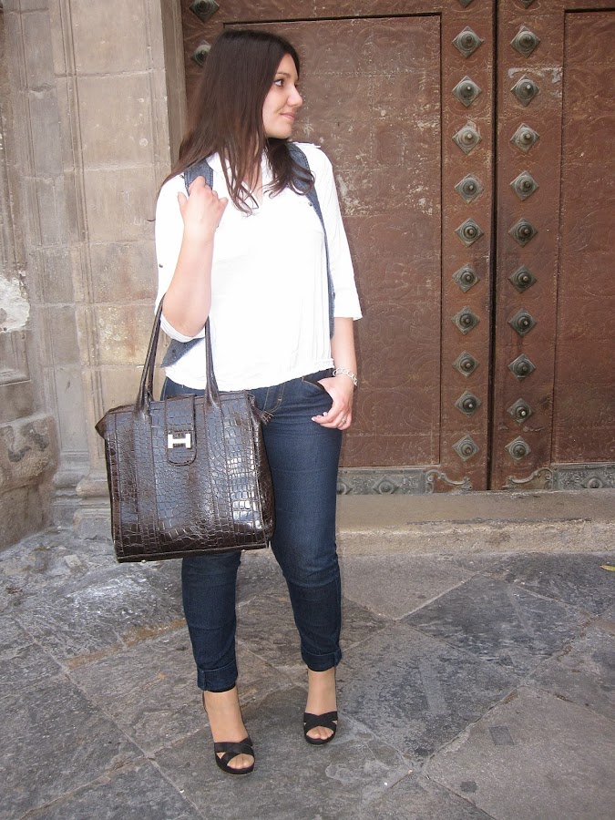 Para la ocasión, elegí un outfit casual pero con el toque chic del chaleco que hace mil que no me ponía! La verdad es que el look fue totalmente improvisado, no había pensado nada y tuve que decidirme en 5 minutos! Así que opté por algo básico que nunca falla: jeans-blusa-chaleco vaquero (tenía pensado ponerme una blazer, pero como hacía muy buen día la sustituí por el chaleco).