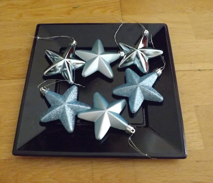 Estrella y espumillón azul: 1,99 cada cosa