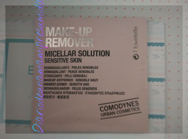 COMODYNES- TOALLITA DESMAQUILLANTE MICELAR- Tamaño venta 4,30€ (40 toallitas. en primor están de oferta, aquí, 3,99€), nos mandaron 1 toallita