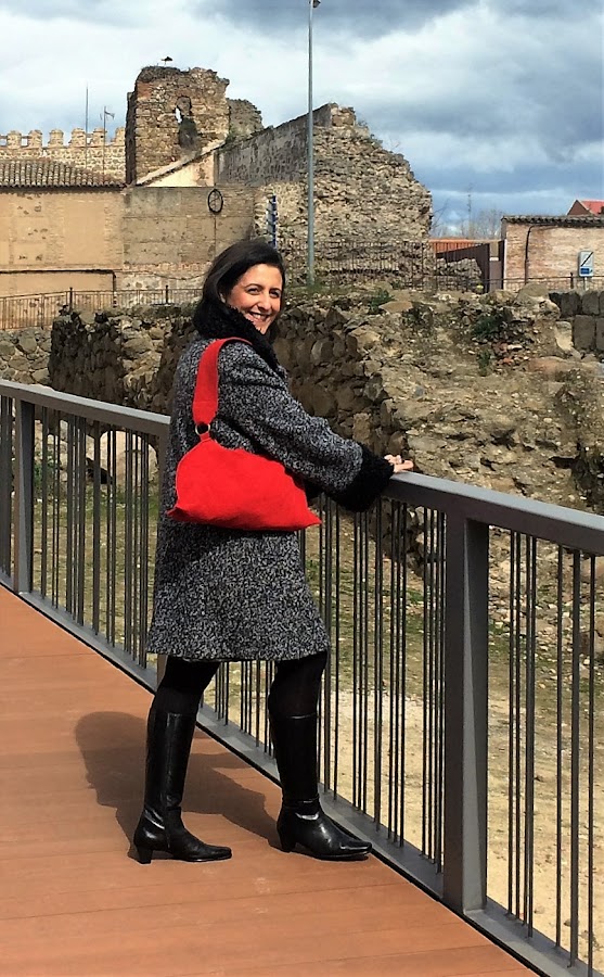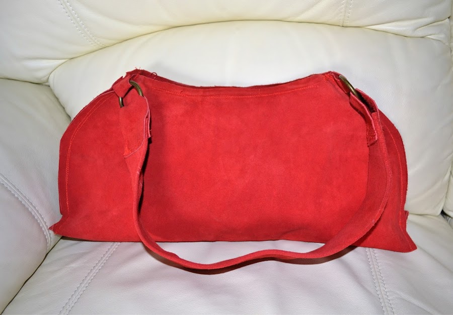 Me encontré casualmente con un trozo de piel de ante en color rojo y fue inevitable llevármelo, me puse con el a ver que sacaba y cuando vi que podía hacer un bolso me encanto la idea.