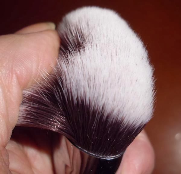 Con esta brocha me fío más, por que como tiene un corte oblicuo me va a maquillar en una zona tan ancha como yo quiera. Esto lo controlo más que con la brocha más gorda.