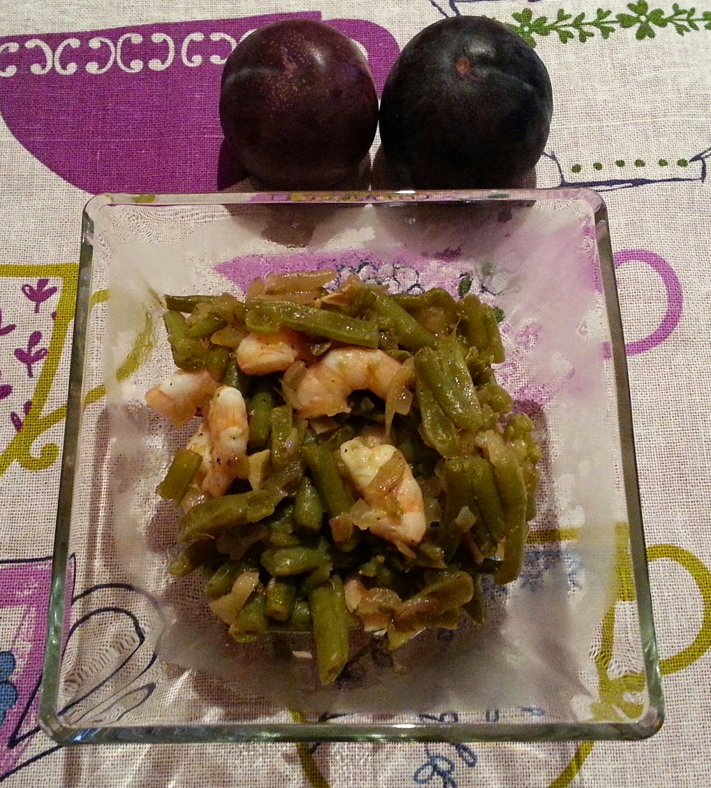 - Pescado blanco con pimientos y cebollas. (Postre ciruela)