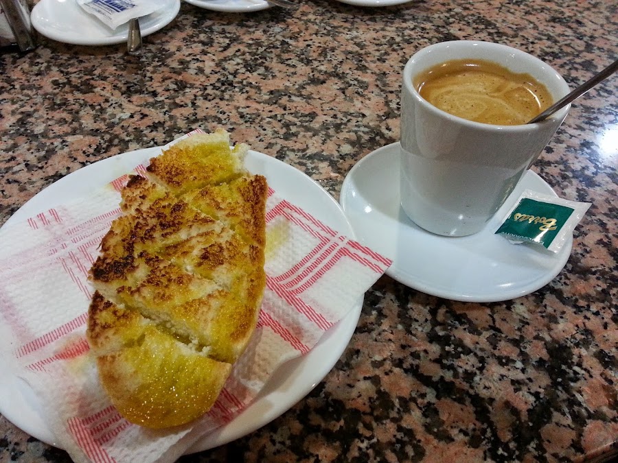 - Tostada con aceite sólo ó con aceite y tomate con jamón serrano, cocido ó pavo