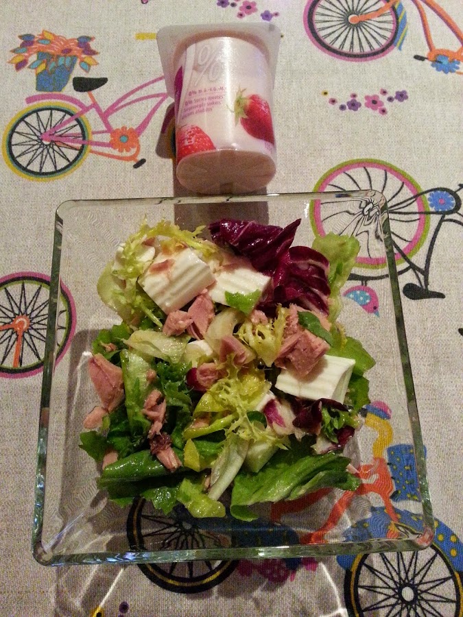 - Ensalada de lechuga y pescado en blanco (yo cambié el pescado en blanco por una lata de atún natural)