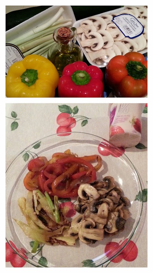 - Salteado de verduras (2 días) yo he usado pimientos, cebollas, ajetes y calabacín para una noche y para la otra solamente salteado de calabacines