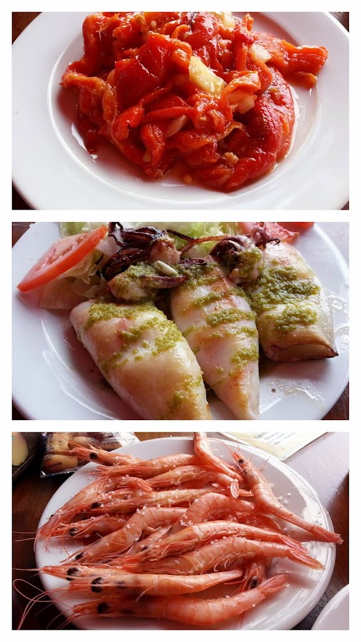 - Salí a comer fuera y pongo las tapas a compartir que comí: Gambas cocidas, pimientos asados y chipirones plancha