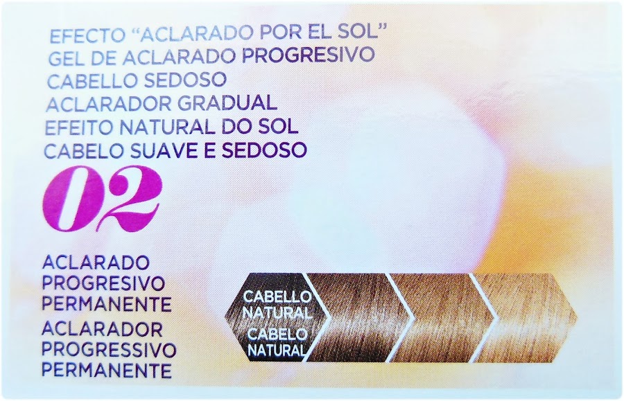 "Un gel suave y sin aclarado que aclara gradualmente tu pelo con resultados duraderos, un look efecto rayos de sol fácil de conseguir y con un brillo luminoso. Todo esto, sin amoniaco. Efecto soleado de verano en tu pelo ¡Todo el año! Fácil: Se aplica sobre el pelo seco como un gel, sin aclarado. Puedes hacerlo por todo el pelo o mecha a mecha. Hidratante: Gel enriquecido con aceite de camelia que nutre y suaviza el cabello. Contiene Micro-Ceras anti-encrespamiento para un look perfecto en todo momento".