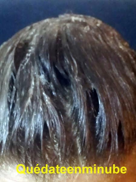Después con un peine me fui abriendo las raíces centrales, por la parte delantera, echaba el producto y así mechón a mechón, al principio con cuidado porque no sabía si la cantidad del producto me iba a dar para todo el pelo pero he de decir que no tengáis cuidado porque os da de sobra. Mi pelo ahora lo tengo cortado a media melena así que una vez que ya tenía todo el pelo cubierto, eché el resto como si de un champú se tratara, lo mezcle como en un lavado, vamos. Y una vez hecha esta fase, me senté a esperar los 40 minutos que me indicaban las instrucciones y así estuve ante la atenta mirada de mi marido que muerto de risa no se cortaba ni un pelo, en fin...jeje...