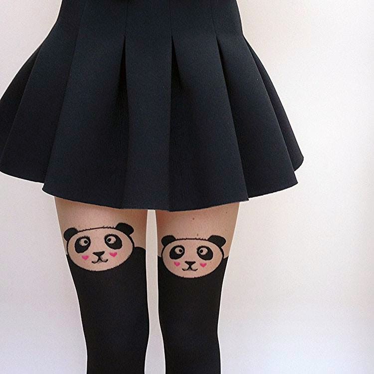 Falda plisada 14???; Medias con cara de panda 3,5???