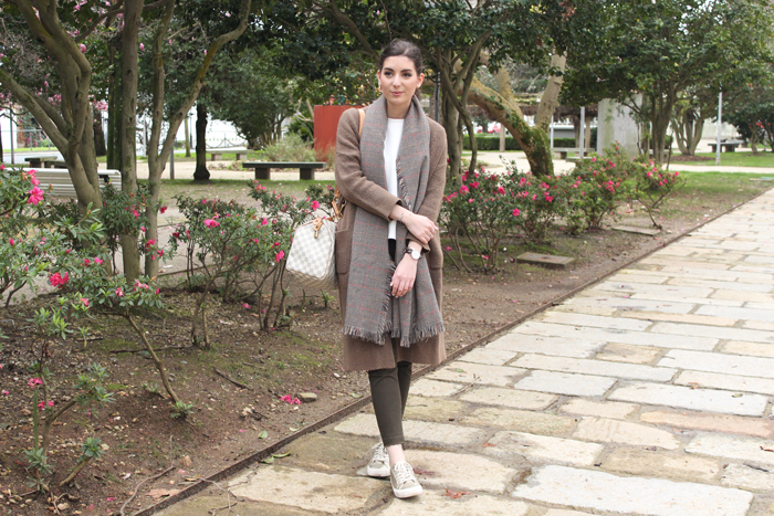Y la chaqueta también es de estreno, de las rebajas. Es una de esas entre chaqueta y abrigo que están de moda ahora. Es súper calentita y muy cómoda, perfecta para estos días.