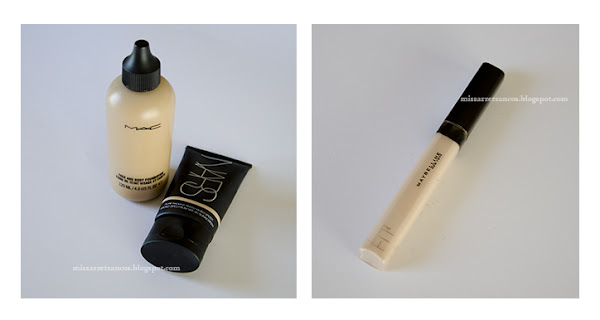 Como base de maquillaje estoy mezclando la Pure Radiant Tinted Moisturizer de NARS, (tono Alaska), con la Face&Body de M·A·C (tono c5).