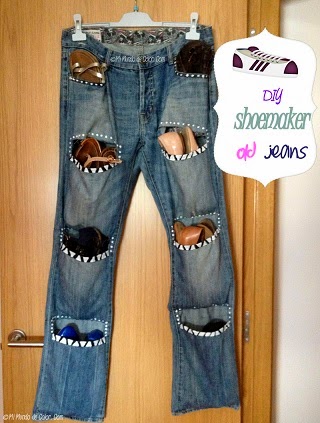 Mi Mundo DIY es muy interesante también ya que da muchas ideas para cambiar de look algo que ya no usas o que no te gusta. Como este pantalón vaquero reconvertido en organizador de zapatos.