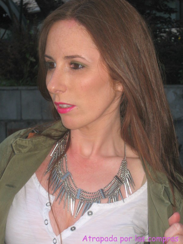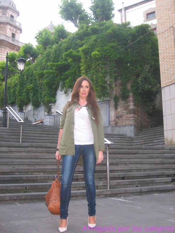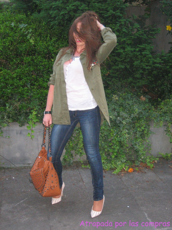Llevaba mucho tiempo con ganas de una camisa militar pero no acababa de encontrar algo que realmente me convenciera, hasta que el otro día vi en Zara la que os voy a enseñar, me entusiasmó el detalle del bolsillo y me parece una prenda a la que se le puede dar múltiples combinaciones. Como complemento protagonista del look el bolso de calaveras, uno de mis favoritos, me enamoré de él la primera vez que lo ví, últimamente estoy encantada con tanta calavera, pinchos, tachuelas..... y en este outfit lo intenté juntar todo, espero que os guste.