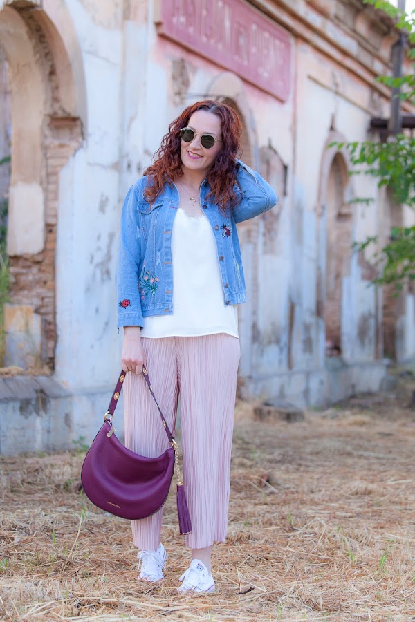 Como se nota que ha llegado el calorcito y tanto los colores vibrantes como los estampados propios del verano ya han aparecido. Hoy llevo un top tejano con escote enseñando los hombros que he combinado con unos pantalones de rayas que me encantan y que van a ser unos de mis favoritos este verano. Para darle luz al outfit, le he añadido los complementos en fucsia tanto en los zapatos como en el bol ...