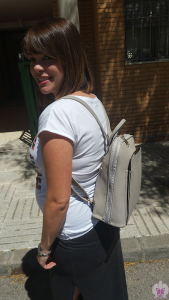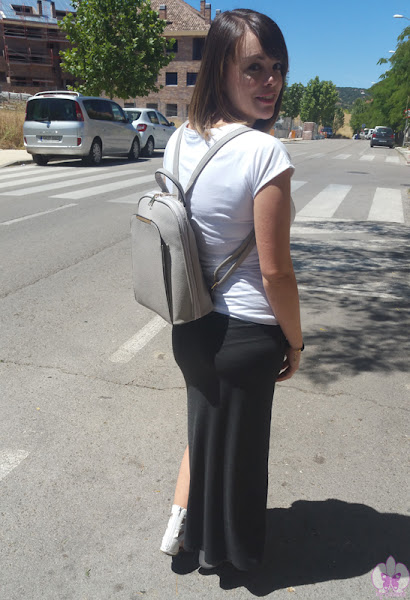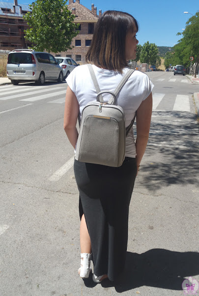 Ya me visteis en el post del long orange dress que llevaba una mochila-bolso porque desde que me lo compré me parece tan cómodo que no estoy usando otro tipo de bolsos, así que cuando vi este en Zaful no dudé en hacerme con él, porque entre el embarazo y el verano y después con el bebé, me parece que es imprescindible llevas las manos y los brazos libres, como cuando vamos de turismo a cualquier ciudad, que la mochila es lo más cómodo, así que vi esta tan bonita y "más de vestir" y me encantó.