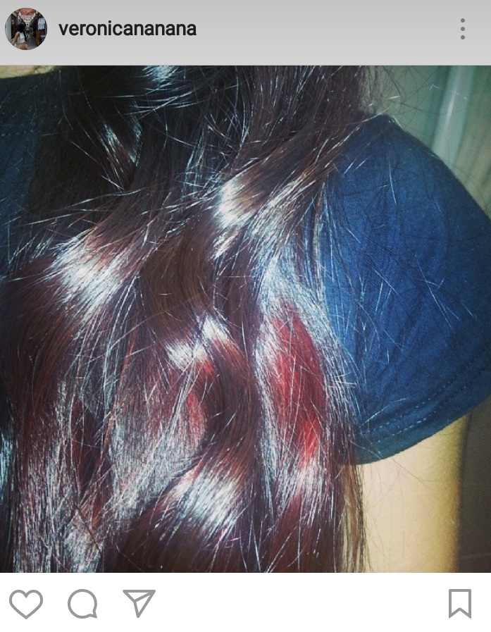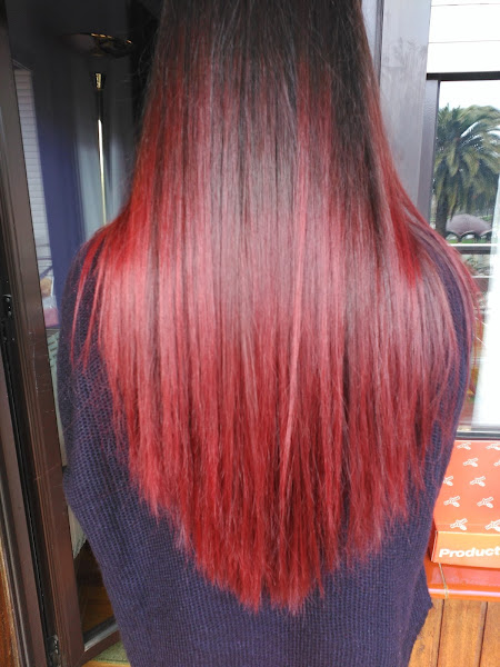 Siempre quise tener las puntas rojas, aunque con la largura que tenía mis puntas vienen siendo todo mi pelo menos las raíces. Así que cuando tenía... unos 17 años me decoloré todas las puntas y las llevé rojas/granates/magenta durante casi un año.