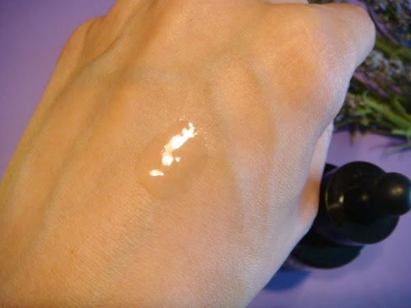 Se presenta con textura de aceite seco y poco denso, que penetra en la piel fácil y rápidamente, sin sensación de grasa o pesadez. Es transparente y quizá lo que más nos pueda llamar la atención al abrirlo sea su aroma, un poco fuerte, ya que es muy puro. No es que tenga una fragancia fea, sino que huele muy fresco y mucho... a hierba, o bosque. A mí no me molesta para nada este olor pero quiero recalcarlo porque es una de sus características principales. No tiene nada que ver con los otros productos de la gama, por ejemplo.