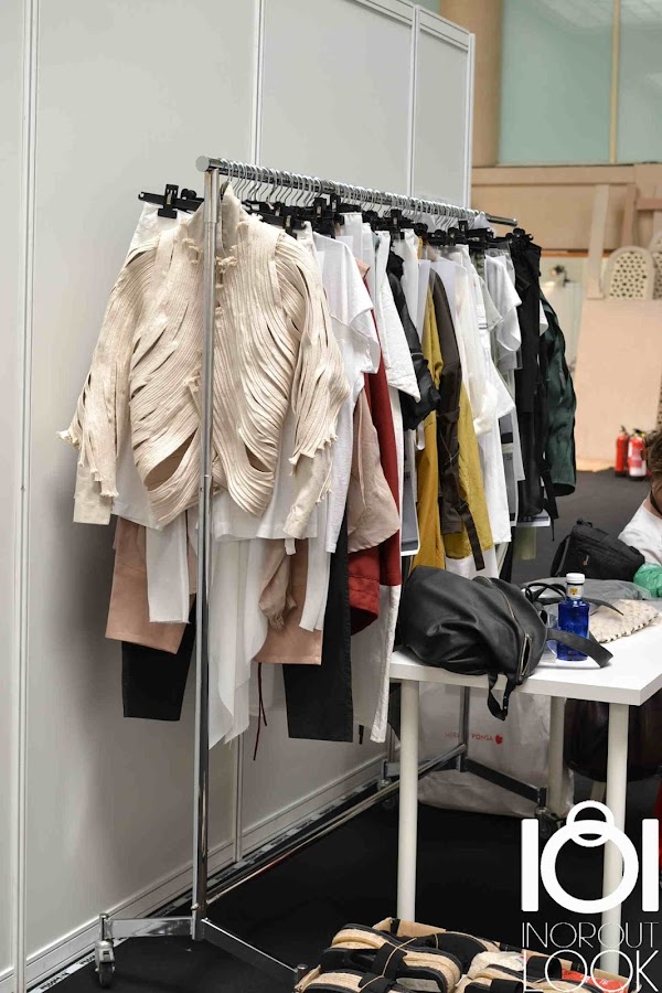 A la primera diseñadora que pude conocer y ver su colección detrás de backstage fue a Eline Van Ree.