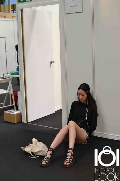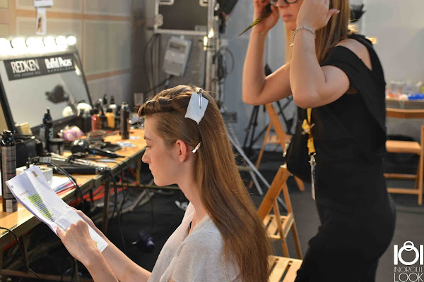 Luego seguí por la ruta del backstage donde encuentras un poco de todo, modelos descansando y otras haciendo pruebas de ropa, otras maquillándose y algunas haciendo photoshoot de la colección.