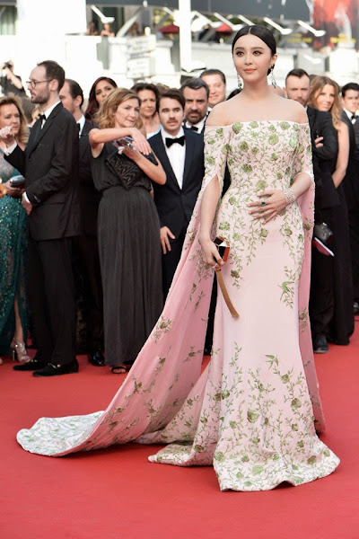 Fan Bingbing: Ralph & Russo / Marchesa. A la china le gusta ser el espíritu de la primavera en Cannes, además de hacer gala del estilo de moda de su país natal. El primer modelo me gusta y me sorprendió con las mangas largas y las flores bordadas. El segundo... por todo.
