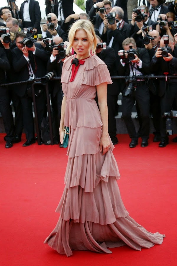 Sienna Miller: Gucci / Sonia Rykiel. Sienna puede ir impresionante o muy mal, no hay término medio con esta mujer. En el primer modelito, todo iba bien hasta ese lazo al cuello, que la hace parecer una muñequita de porcelana. En el segundo caso, su error fue ese estampado de estrellitas. ¿Por qué, Sienna? ¡¿Por qué?!