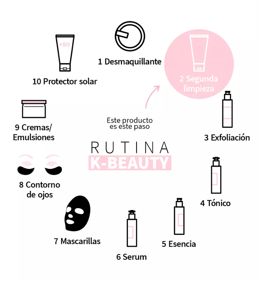 Por lo general se utilizan con los 10 pasos de rutina coreana, como puedes ver en el diagrama, pero los vamos a simplificar con estos pasos: