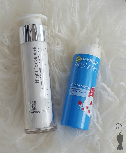 Y para terminar con mi rutina facial, aplico de mañana la crema hidratante de Garnier hydra Bomb y de noche la crema de noche night force A+E de Frezyderm. Ambas me hidratan genial mi piel mixta sin engrasarme, y aportando la hidratación necesario para mi piel.