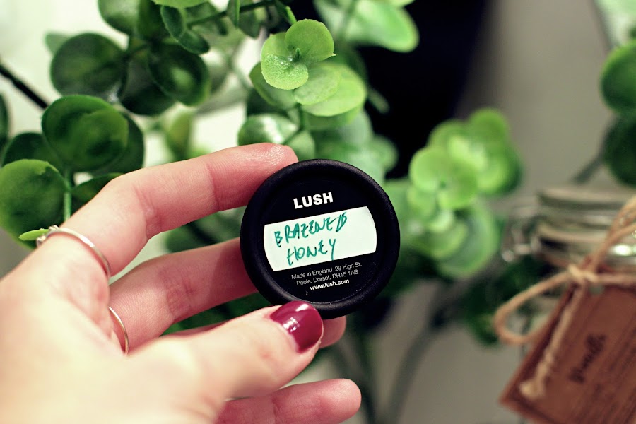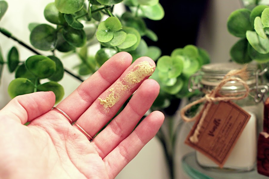 En primer lugar, me lavo la cara con agua caliente para que se abran los poros, y después aplico la Brazened Honey de Lush.