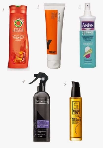 En cuanto a mi cabello, también sigo una rutina bastante completa (champú, mascarilla, acondicionador, protector del calor y serum) que os muestro a continuación.