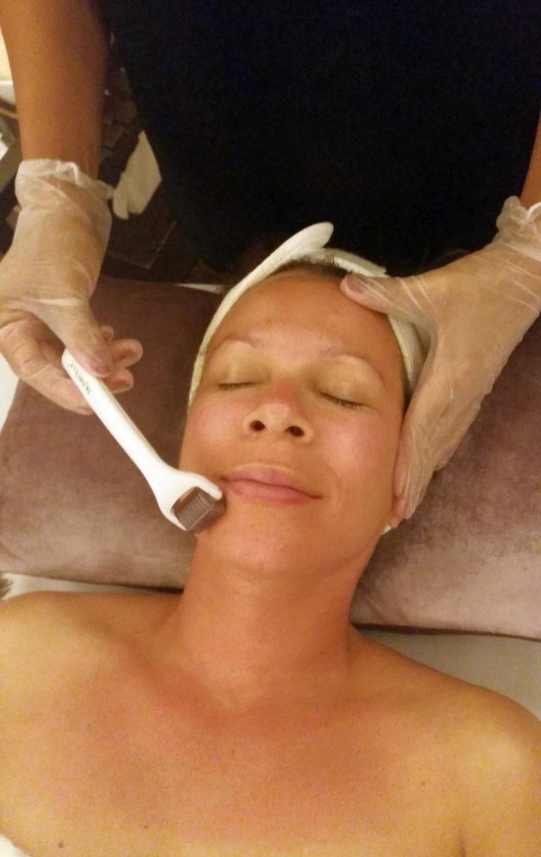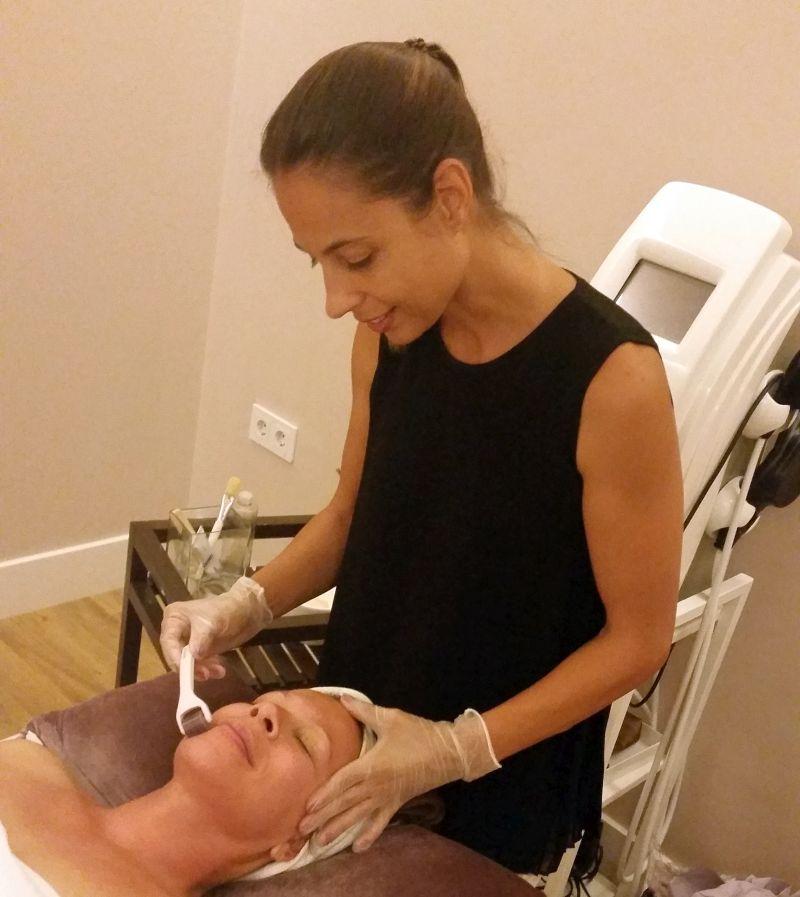 Para empezar con el Skinröller, se trata la piel con peeling (yo la vengo tratando desde hace 2 meses) y diferentes mascarillas. El día del tratamiento, luego de la limpieza te colocan una anestesia (sin aguja) con una brochita y esperan unos 30 minutos a que haga el efecto.