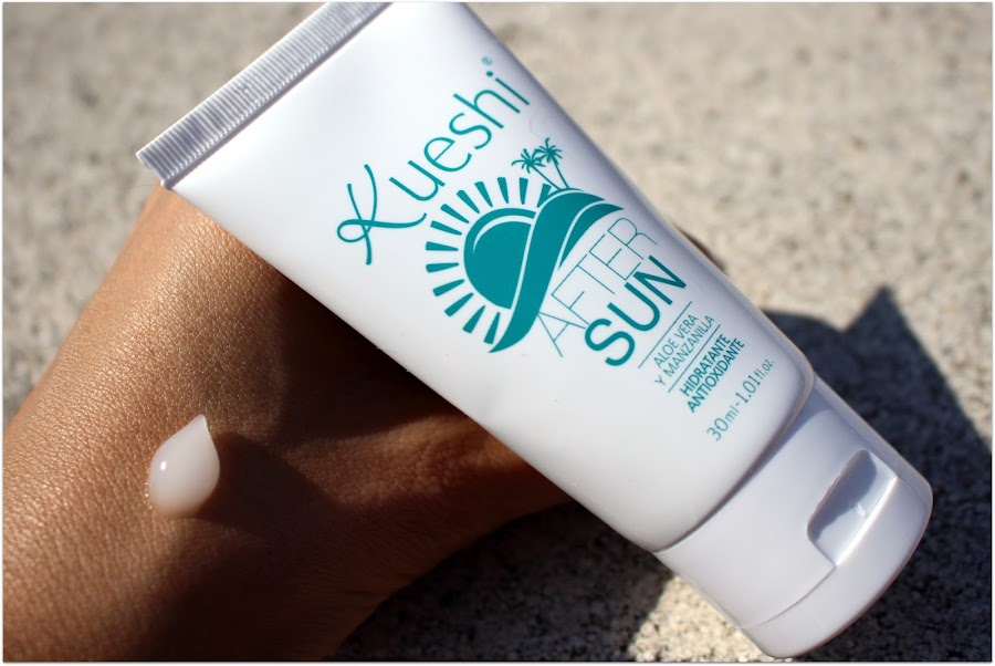 Y por último, no podía faltar para un buen cuidado de la piel bajo el sol un producto hidratante After Sun de Kueshi. Se trata de una minitalla que obtuve en una de las Birchbox y no podría gustarme más. Además de calmar, hidratar y nutrir la piel después del sol, ayuda a prolongar el bronceado, refresca la piel y evita la sequedad. Entre sus ingredientes se encuentra aloe vera y manzanilla ecológica.
