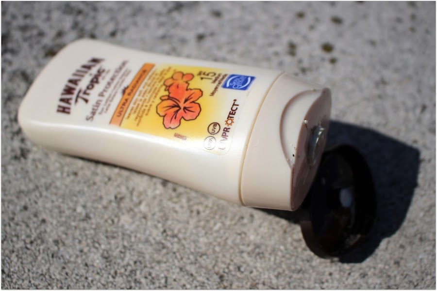 En primer lugar me gustaría hablaros del Hawaiian Tropic Satin Protection Ultra Radiance. Se trata de una crema solar con protección SPF 15 (sé que algunas pensaréis que es poco) resistente al agua. Es muy cremosa, pero se absorbe muy fácilmente, dejando en la piel unos brillitos espectaculares que realzan el bronceado. No contiene aceites y su textura no es grasa, y además contiene vitamina C y E, y una fragancia tropical que me encanta.