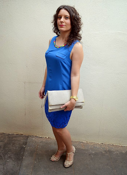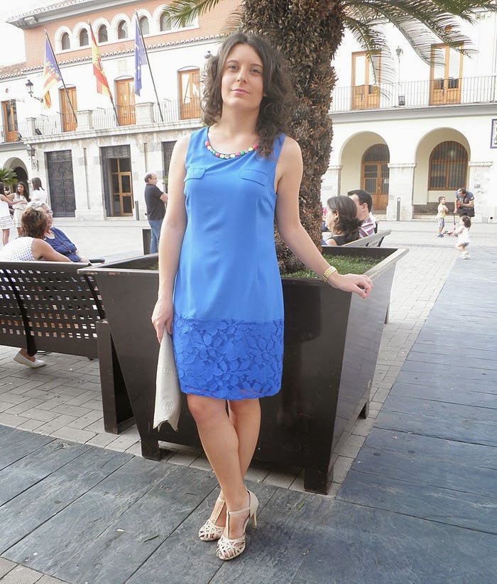 Holaaa!! Ya os comenté el martes por las redes sociales que tenía la confirmación de un primo mío y os enseñé una foto de como iba vestida. Pues hoy os enseño el look al completo. Se trata de un vestido azul, que casualidad no? el nombre de mi blog "Mi Vestido Azul"...sí, soy una enamorada del azul desde siempre, tal vez sea porque soy acuario..no lo sé,la cuestión es que me encanta, y este vestido también! Como podéis ver es bastante sencillo. Es de color azul klein y lleva en la parte inferior un poco de encaje. Lo que más me gustó fueron los detalles de pedrería que lleva alrededor del cuello y simulan un collar. Era perfecto para la ocasión, ya que no requería la elegancia de una comunión o una boda. Como complementos elegí un bolso de estampado de serpiente y mis nuevas cangrejeras. ¿Os gusta el look?