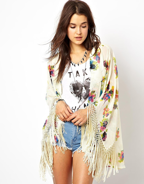 ASOS Kimono with Beaded Embellishment in Floral Print