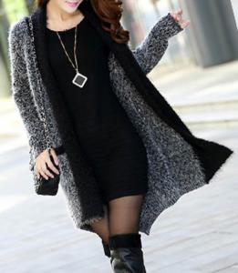 Este Cardigan, me gusta porque me lo imagino como en la fotografía, es elegante pero a la vez práctico y me gusta la combinación del negro con gris.