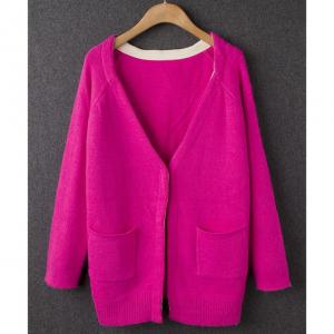 Ladylike Plunging Neck Candy Color Double Pockets Long Sleeve Cardigan For Women
