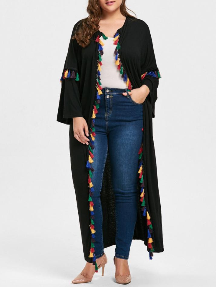 Este es otro de mis preferidos, viene en tallas grandes y aunque yo soy bajita me imagino que un Xl me quedará tan largo como lo quiero; además las borlas no han pasado aún de moda y estas multicolores le dan vida al Cardigan.