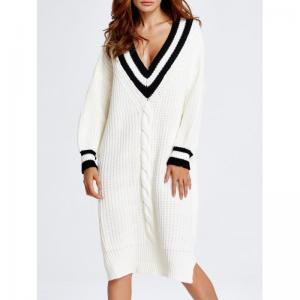 Como soy una amante de los vestidos, también me gusta llevarlos en invierno y este me gusta porque se ve muy grueso y tiene la típica trenza de los jersey pero lo que más me gusta el el escote en V en colores blanco y negro y que también lo lleva en las mangas, esto le da un aire sporty-chic, un estilo que me gusta mucho llevar.