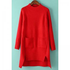 Stylish Long Sleeves Solid Color Pockets Irregular Hem Women’s Sweater Dress