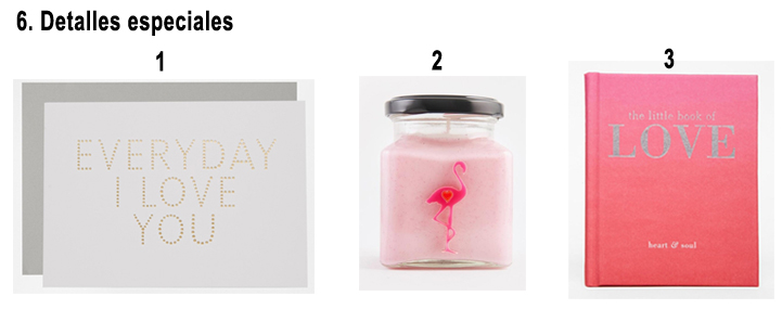 1. Tarjeta de felicitación / 2. Vela aromática / 3. Libro de amor