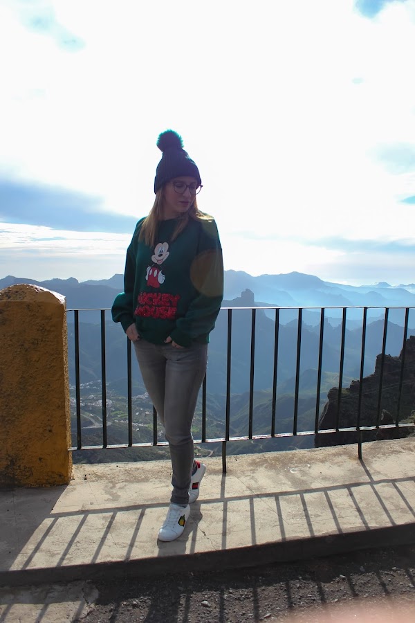 En esta ocasión la he combinado con unos jeans en color gris y mi nuevo gorro con pompón para dar un paseo por el centro de la isla de Gran Canaria en un estupendo día después de las lluvias.