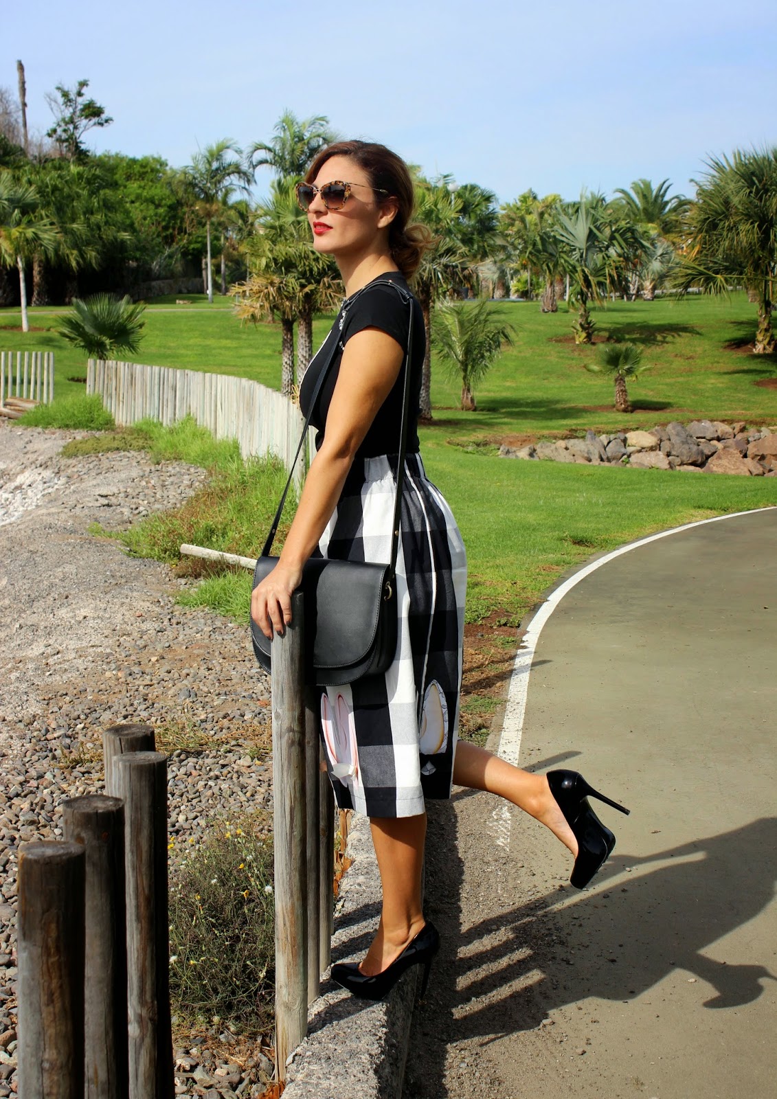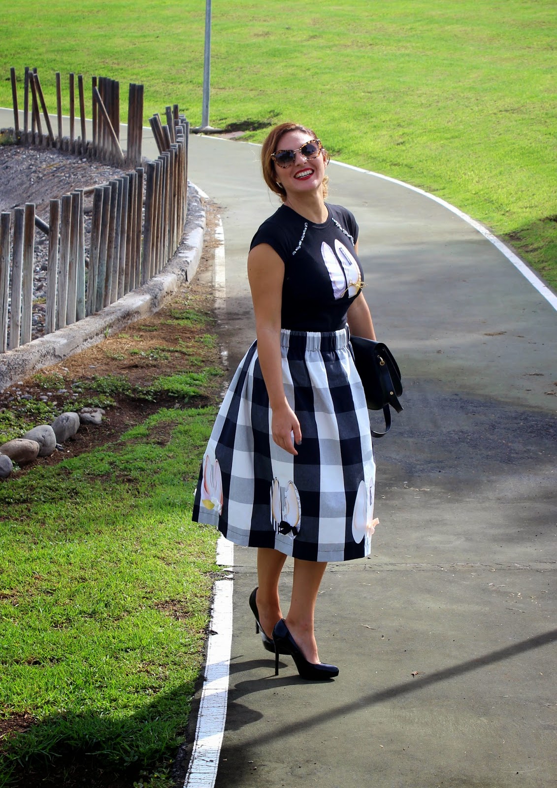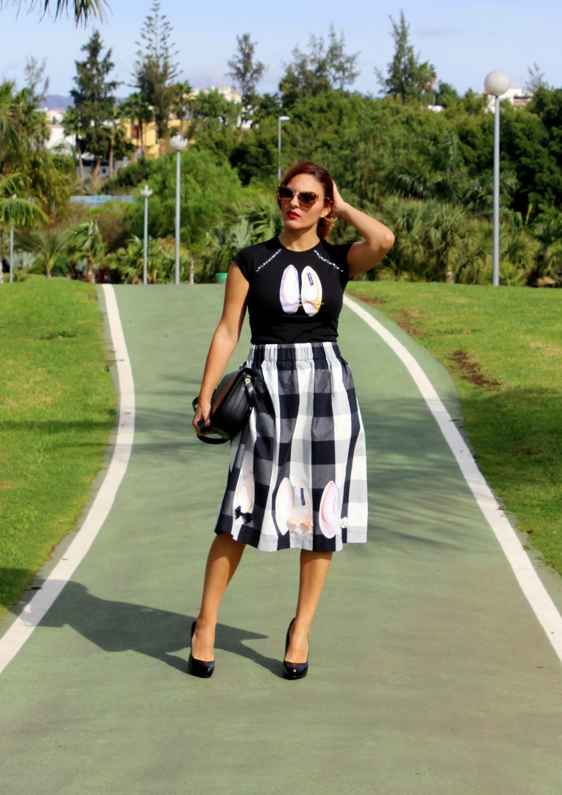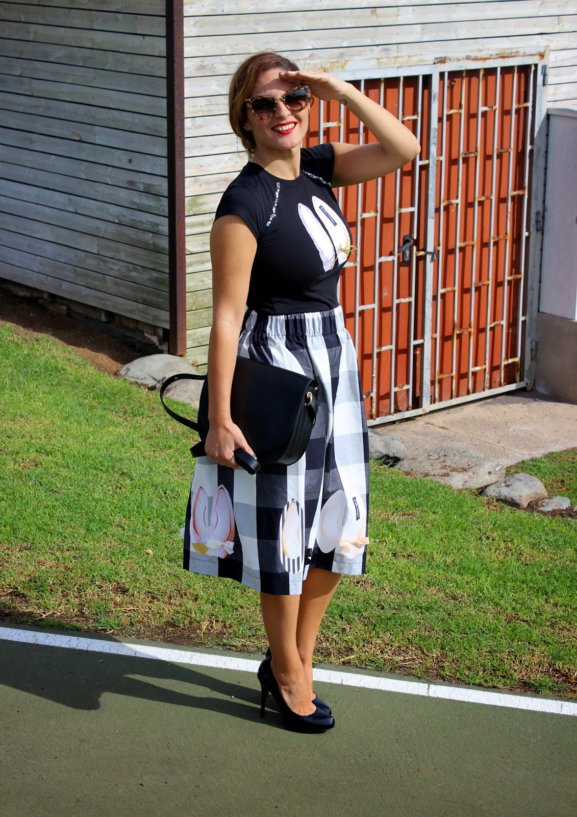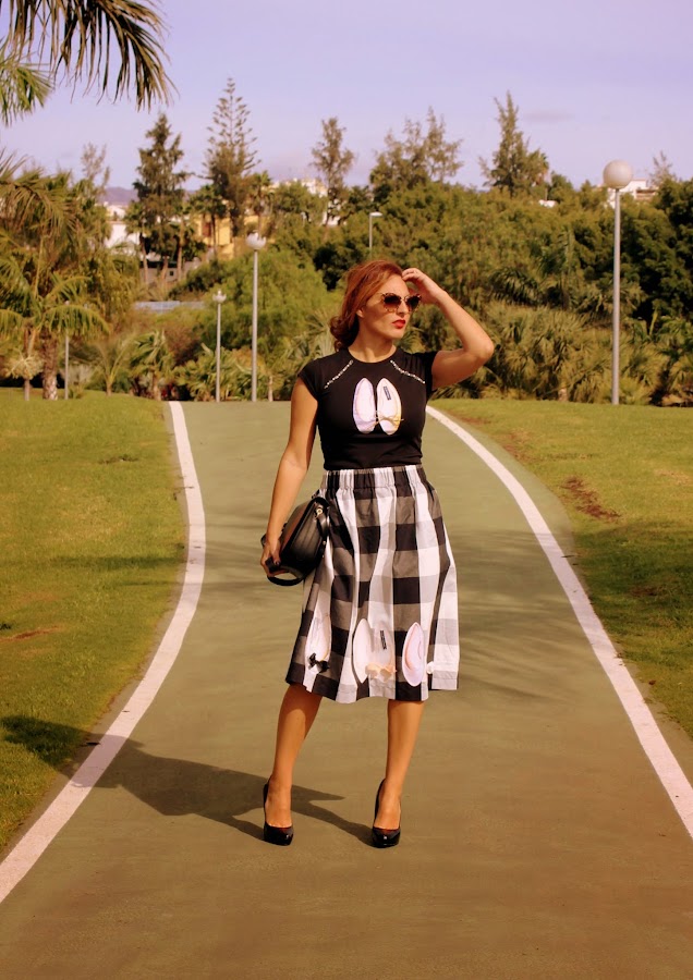 Esta falda incluye las dos tendencias de temporada: los cuadros y el corte midi, perfecta para un look tanto de noche como de día. Aunque no es un largo fácil de llevar lo soluciono con el tipo de calzado y la parte superior.