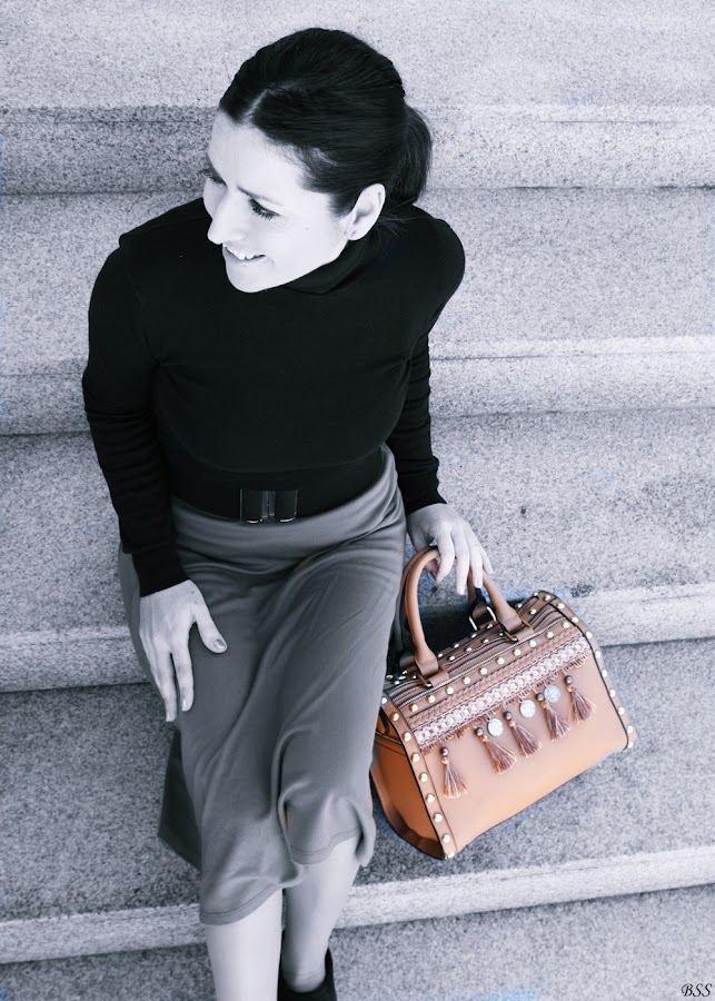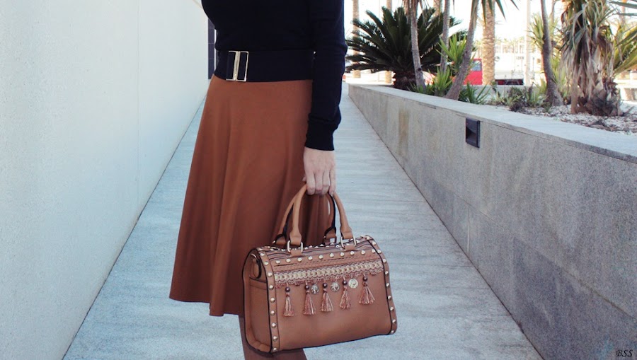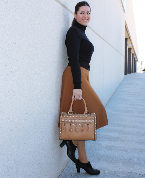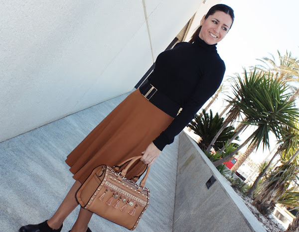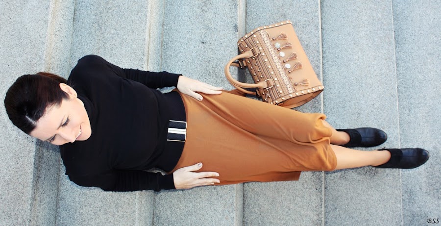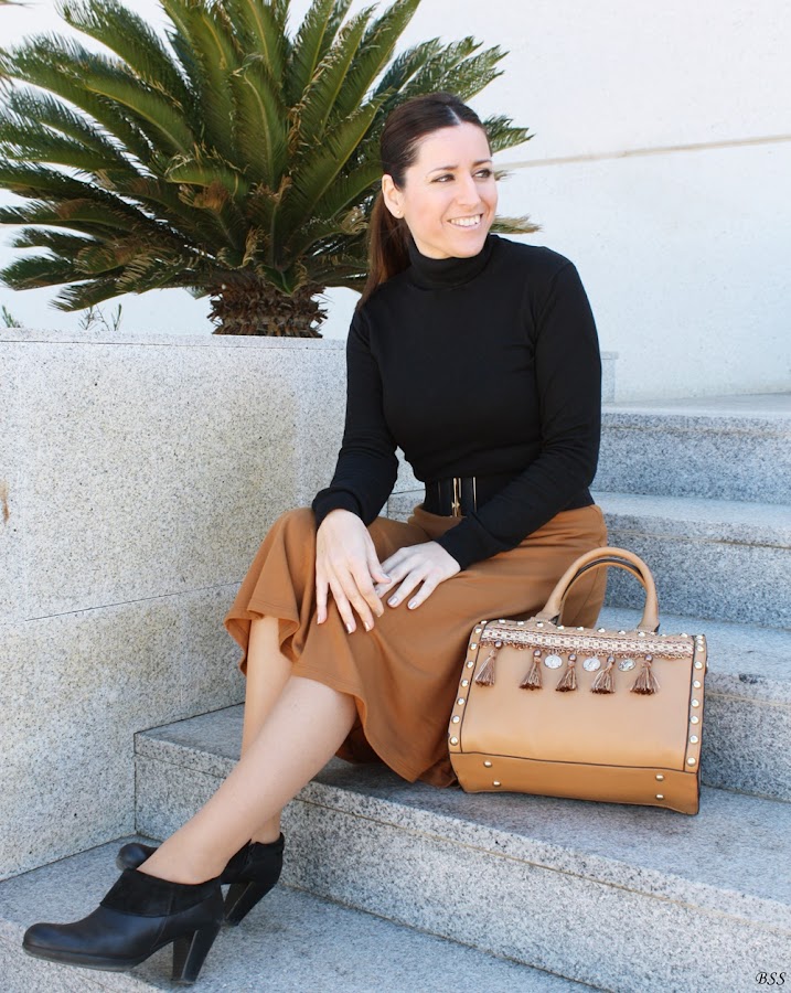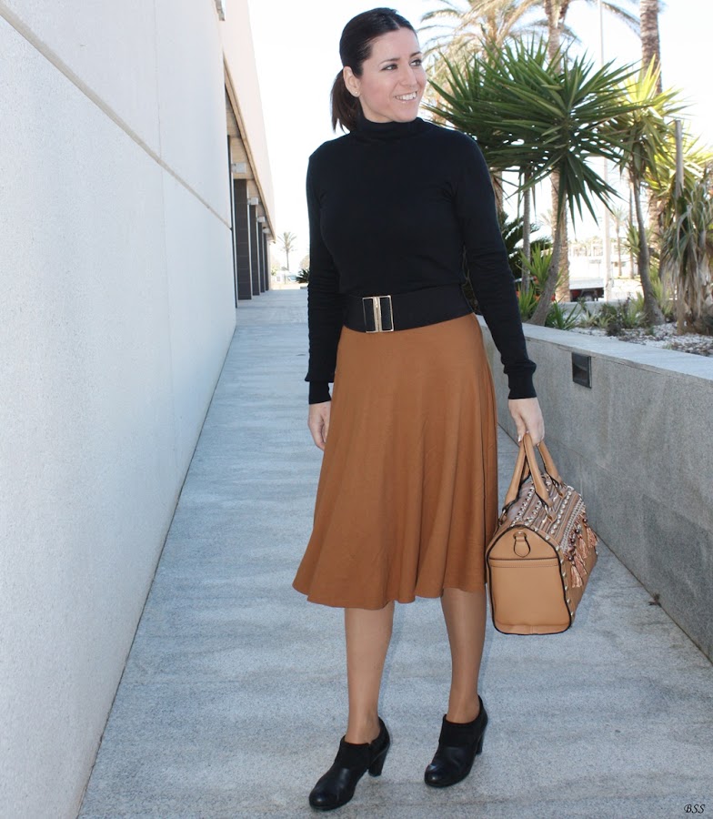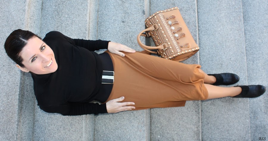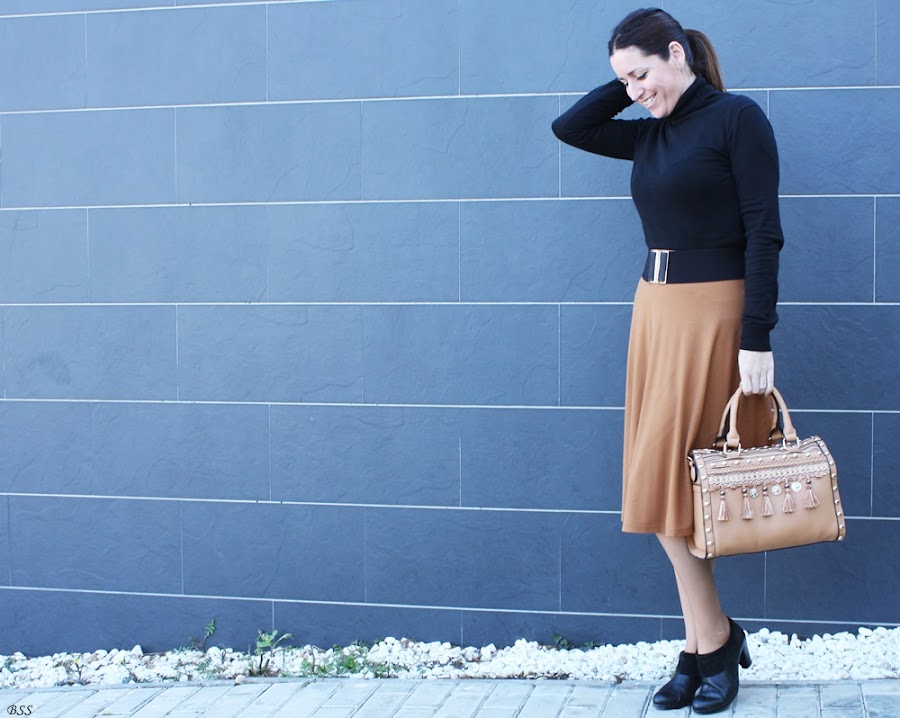 Camel en midi y jersey negro son mi propuesta de hoy donde el estilo claramente hace un guiño a otra década pasada...