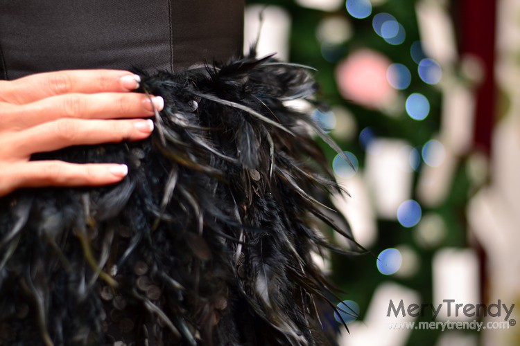 Finalmente, nos decantamos por este vestidazo negro de Esther Noriega con falda de plumas hasta el tobillo, que nos pareció súper apropiado para la ocasión ya que el binomio negro & plumas nunca falla en estas fechas y que os enseño gustosa en primicia, aunque las que me seguís en Insta, también veréis los vídeos que emita en directo en Stories a lo largo de toda la noche de mañana desde mi cuenta: @merytrendy.