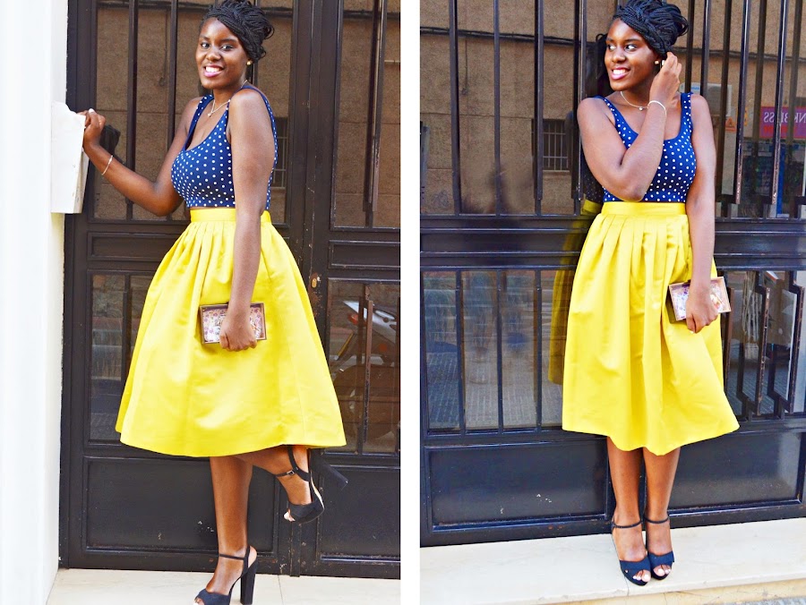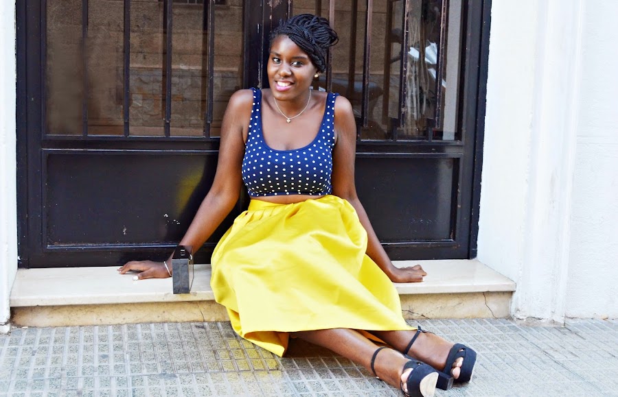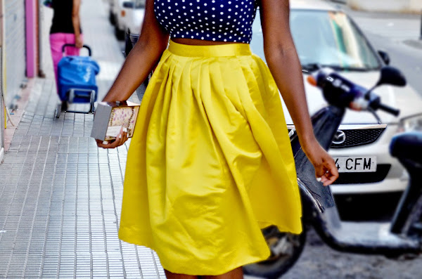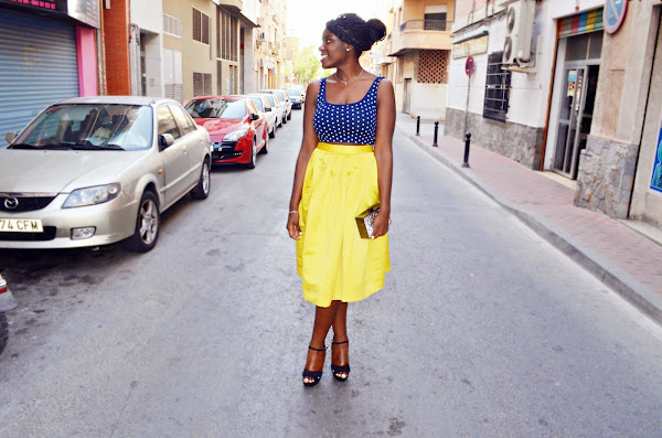 Como mi madre también se dedica a hacer cositas o arreglos, le comenté que es lo que queria y como lo quería, y así quedo mi tan querida falda amarilla (super cantosa jaja) midi.¿Os gusta?¿ Como la combinaríais?