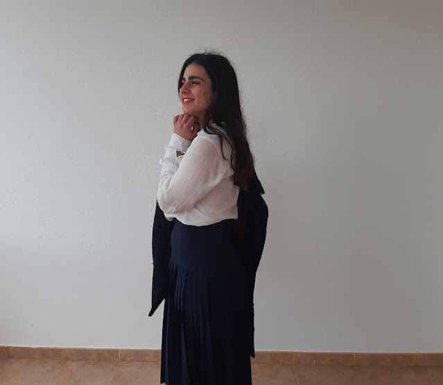 Muchas gracias por vuestras visitas. Este conjunto me parece muy versátil, cómodo, estiloso y elegante para cualquier momento del año. Ahora que estamos más cerca de la primavera, empieza a apetecerme vestirme más fresca y es ideal para llevarlo. Aunque no soy muy de medias o leotardos nos lo podríamos poner sin ellas. Y en verano, por ejemplo se me ocurre, poner una camisa manga corta, botines o sandalias destapadas.