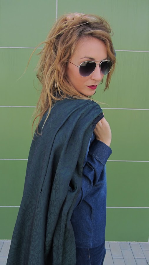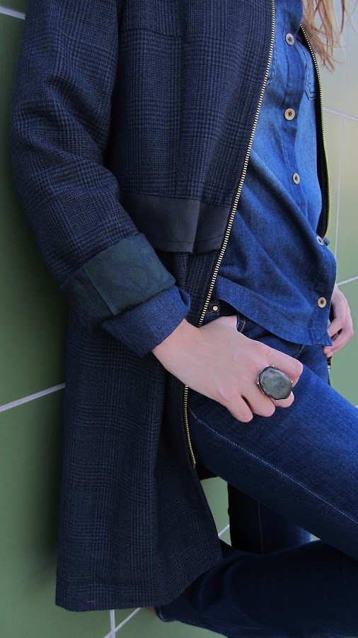 Empezamos con un trench azul de cuadritos perfecto para esos días que va refrescando un poco pero todavía no hace falta salir a la calle con escafandra. Lo combinamos con un look total denim, con vaqueros de campana de Stradivarius, camisa de Bershka y botines de Massimo Dutti. A ver qué os parece el resultado...