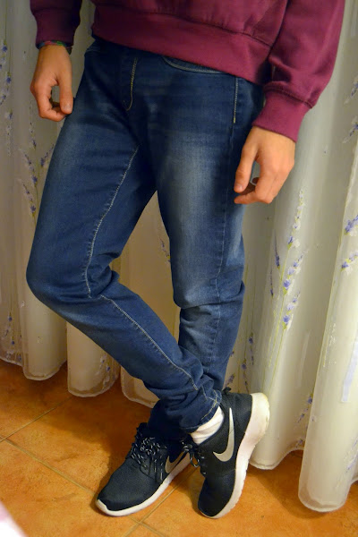 Para ello, no tenía ganas de arreglarme?me da mucha pereza tener que estar siempre pensando en lo que me tengo que poner e ir incómodo para ir de aquí y para allá. Abrí el primer cajón y me coloqué esta sudadera granate sport, y unos pantalones vaqueros que a la vista lo parecen, pero que son tipo elástico, un fantástico invento, ya que el tejano a veces esta más helado que una llave. Los deportivos son mis favoritos.