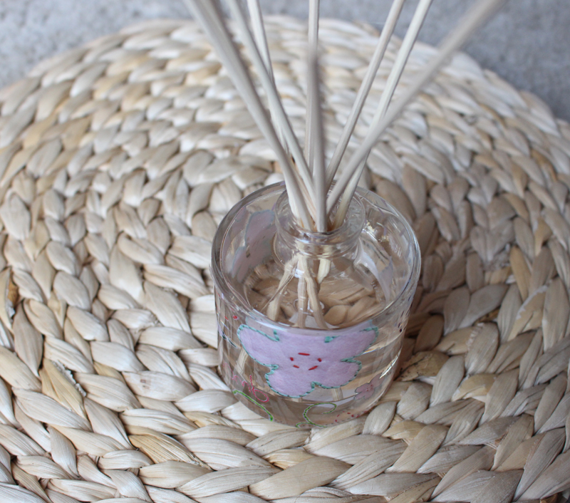 Este mikado de Bomb Cosmetics (o difusor de aromas) se llama Strawberry Patchwork y tiene motivos de patchwork en el difusor (es de cristal y el dibujo está hecho en un plástico que lo recubre) y luego vienen los palitos (mikado) para meter dentro del bote y así a través de los mikado difundir el aroma por la habitación donde lo pongamos.