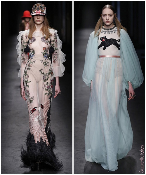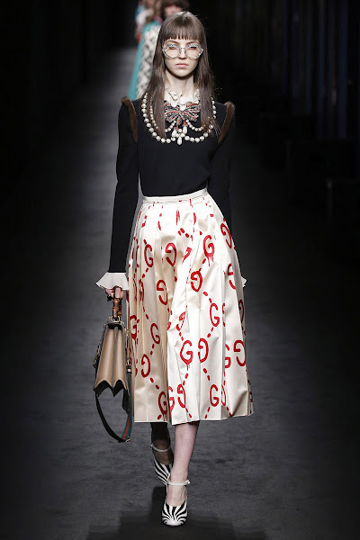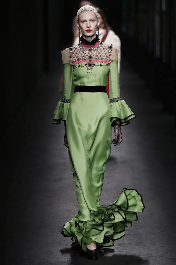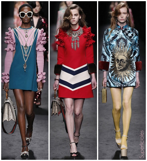 Se define como alegría en vez de pesimismo, recargamiento en vez de sencillez, destacar sobre los demás, sobresalir.. Si nos fijamos, todas estas características aparecen en las colecciones presentadas por A.Michele: el colorido, los maxi accesorios, los estrambóticos estampados, y los looks recargados.